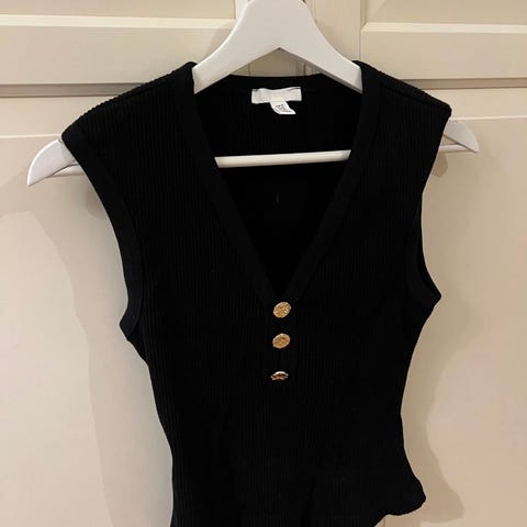 H&M . Paljett topp sløyfe . sort, sølv . glitter . fest, nyår . Strl XS, 34 Ny