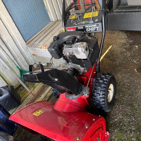 Som du ser den er delt, skulle hatt bytta reimer osv, ble ikke gjort det, å har bare stått du får det du ser på bilder, bra bredde på snøfreserhus, se gjerne bilder for må! Selges som rep objekt det som følger med er det du ser på bilder!