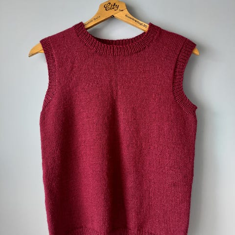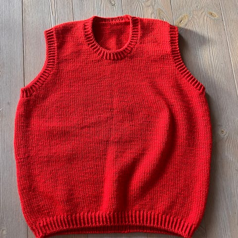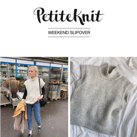 Den er en oversized modell, og kan derfor passe alt fra S - L, avhengig av hvordan man ønsker passformen. Strikket etter Petitknit sin oppskrift «Friday Slipover», men har gjort noen egne justeringer.