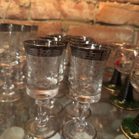 Gamle krystall ølglass/ vannglass med gull dekor og lysestake
