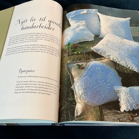 Her er det mye fint å brodere, duker , gardiner , dåpskjole med tyllbroderier , til jul til påske, litt korssting , men mest plattsøm, stilkesting, schattersøm, franske knuter og mye mer