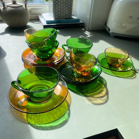 Fargen er brunrosa. Ca 11,5cm høy. Stempelet Hadeland i bunnen. Ingen skader og lite slitasje. Billigste porto blir 69kr med Postnord.