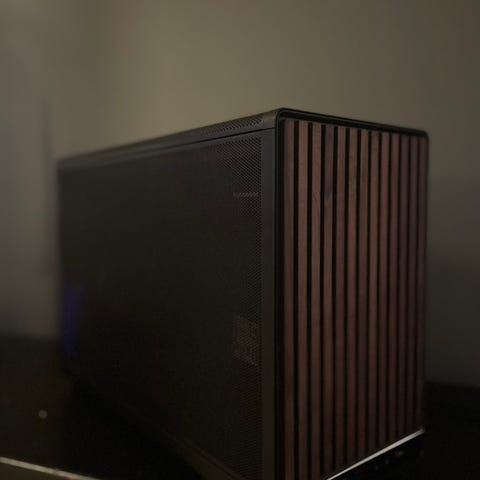 Estetisk møbel som passer i stuen eller på studenthybelen. Svært stille. All black build uten blinkende lys. Venstre sidepanel og topp i mesh. Messingdetaljer. Svært god luftflyt for kjøling. Kan utbygges og oppgraderes ved behov. Windows 11 Home er forhåndsinstallert. Lisens må kjøpes. Bud ok.