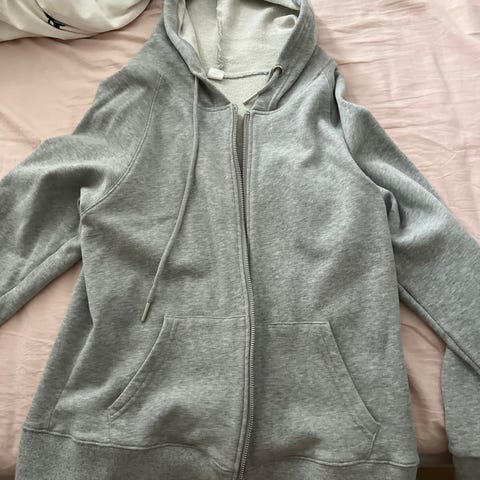 Hettegenser. Farge grå. Glidelås og lommer foran.