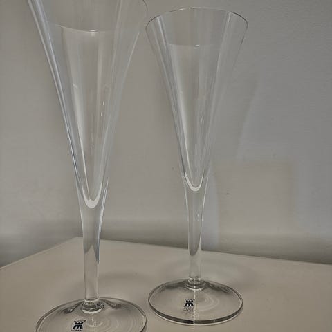 2 stk gamle champagneglass med dekor. Selges samlet for 300.