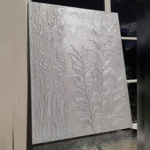 NYTT. Stort, skulpturert maleri på lerret. Abstrakt. Bas-relief. Monstera Albo.