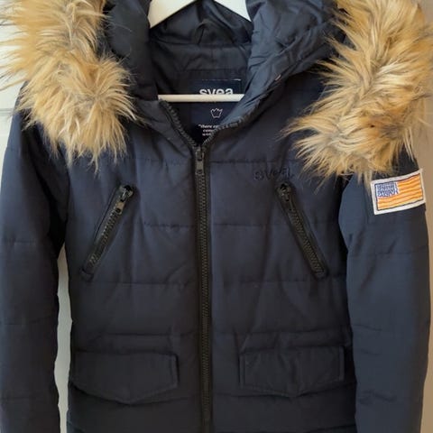 Like pen som ny! Nyvasket jakke med avtakbar fuskepelskant på hetta. Str. XL, men mer som L.