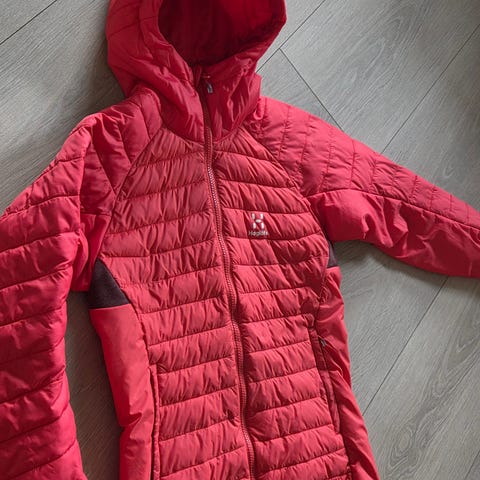 Haglöfs vinterjakke for dame i størrelse L. (Samboer bruker M og passer henne) Jakken har hette og gjennomgående glidelås i front. Den er vattert og egnet som ytterjakke i kaldere vær. Fargekombinasjon med rød og gul, med sidelommer og brystlomme med glidelås. Passer til hverdagsbruk og utendørsaktiviteter i vinterhalvåret.
