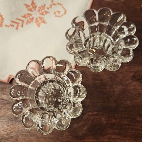 2 lysestaker i polert naturstein selges samlet for 140kr.