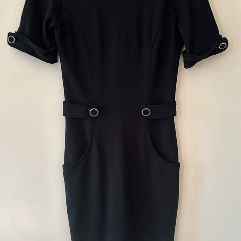 Selger en ubrukt, klassisk v-ringet kjole fra HM. Farge marineblå, str. 38. Splitt bak.