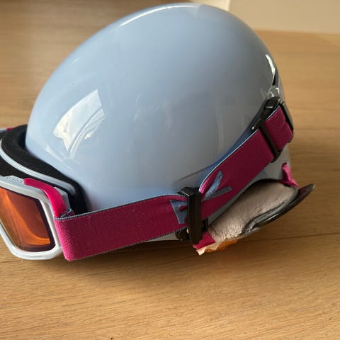 Pent brukt skihjelm selges da den ikke blir brukt. Den er fra merkes carrera i strl s (56cm). Kan kjøpes i kombinasjon med skibriller eller individuelt. Det følger også med en pose å ha både hjelmen og brillene i ☺️
