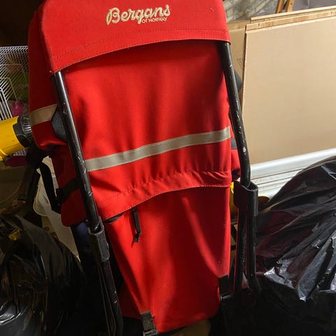 En god og gammel Bergans bæremeis. Den er lett i vekt og ikke vært for mye brukt gjennom tidene. Oppbevart innendørs, så den er fortsatt fin.