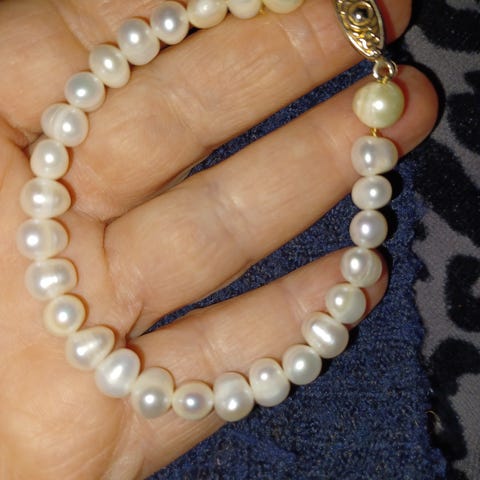 Armbånd av store, perler vurderes solgt. Perler ser nsturlig ut. Størrelsen på perler - 12-13 mm.