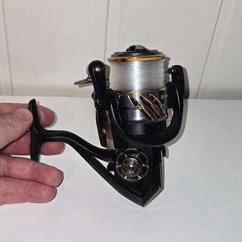 Snelle Kinetic 6000 FD ett år gammel. Den er ikke brukt. Har passende eske som går under liten til pakke å sende med. Har også bobleplast. Dette er en knallbra snelle som nok ruller veldig bra og lager svært lite lyd. Den er ikke prøvd. Det er 0,40 millimeter sen som er på den. Oppbevares inne i jus hele tiden.