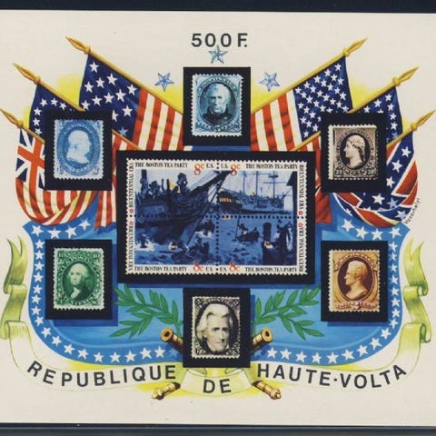 90% rabatt: Øvre Volta 1974 UPU 100 år (Postfrisk), Michel blokk 28.