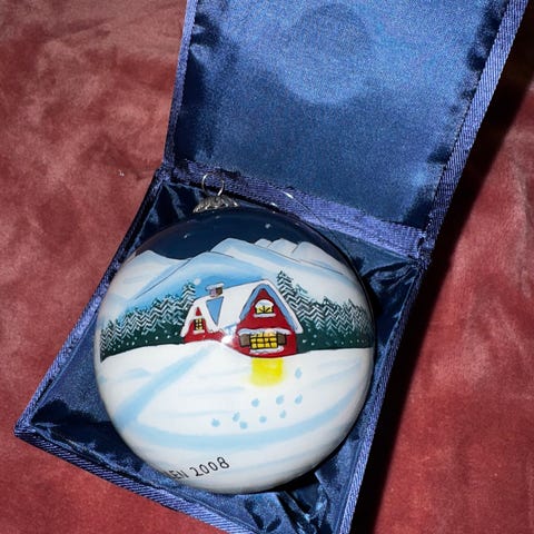 En julekule fra perfect home med oppbevaringseske.