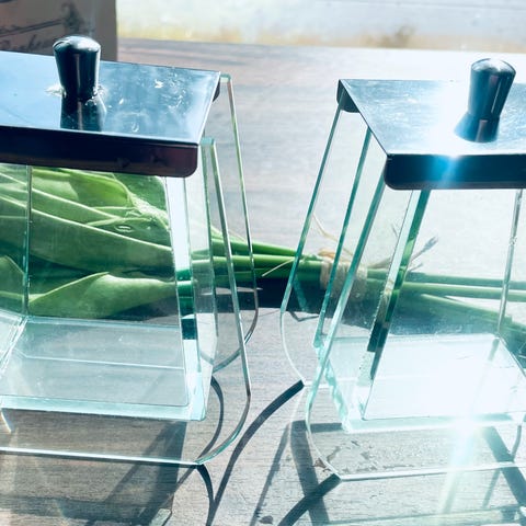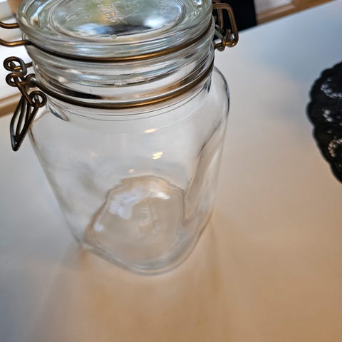 Vintage glasskrukke med lokk selges for 125 kr. Har klistremerke med "San Marco. Made in w. Germany".