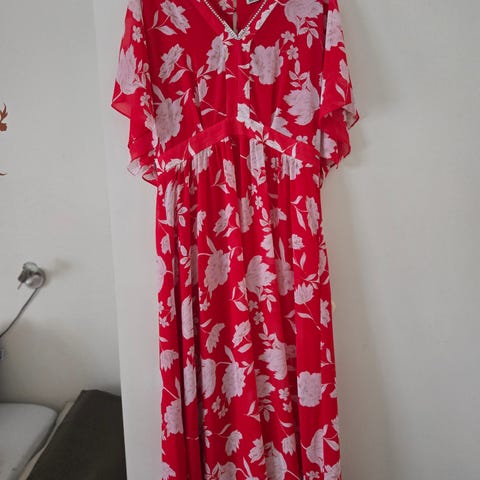 Fantastisk flott, fotsid kjole fra 1970, Dansk design (Alf Damgaard) God kvalitet og et nydelig stoff. Str 36. /Small. Livvidde 68 cm. Ønsker 1000 kr. men kom gjerne med et bud.