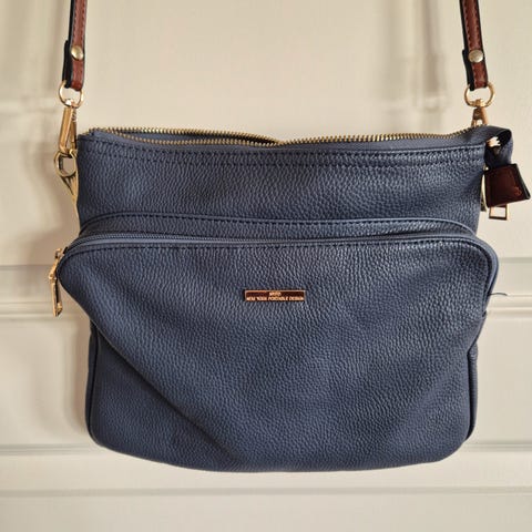Tøff veske i blått med brun rem fra Collection