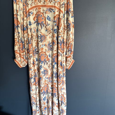 Selger en nydelig kjole i str xl. Selges kun da den er litt stor. Er i et nydelig stoff som faller fint:) Nypris var rundt 2200 kroner (kjøpt på Villa Rosa i Sandnes for lokalkjente).