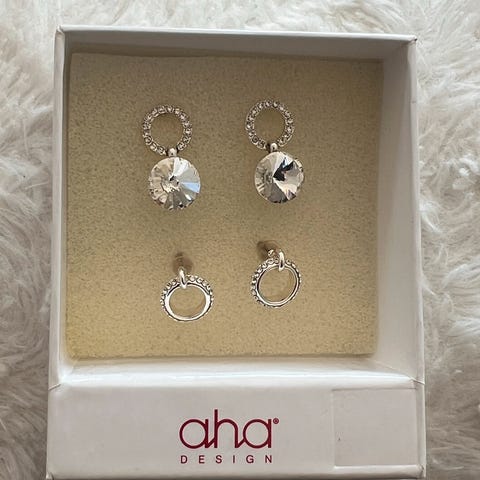 Snö smykke (ubrukt, med lappen på) og to par øredobber (det ene paret er likt som smykket) selges samlet kr 280,- Øredobbene er kun prøvd på. Alt kjøpt nytt i sommer, men ikke brukt.
