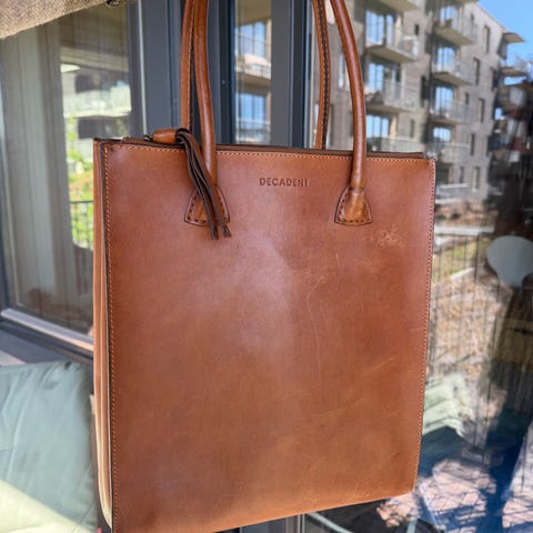 Fantastik lær- og ruskinsveske fra danske Decandent. Kjøpt og ubrukt. En del av serien Jess Safari. Min bud er 1600 NOK originalpris +3000 NOK, kom med bud.