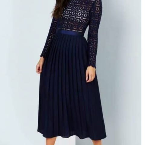 Rålekker Coctailkjole fra Little Mistress. Den er knapt brukt, og fremstår som ny. Glidelåslukking bak, og knapp i nakken. Underkjole, og et lyserosa korsett i overdel inni. Florlett skjørt over, og lekkert blondebrodert bryststykke over på topp. Liten i størrelsen, så den passer en str M/liten L