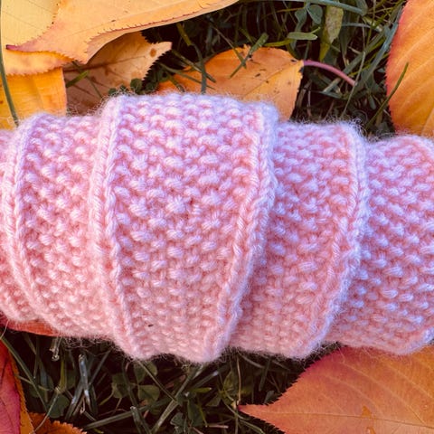 Håndsydd sting pute,montert på systue med glidelås bak