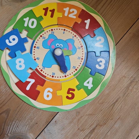 Klokke puslespill I tre. Lær klokke