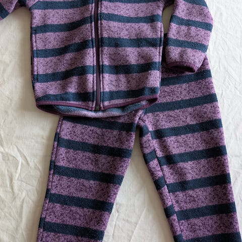Pent og lite brukt fleecebukse og fleecegenser halfzip størrelse 5 år fra Stormberg. Rosa med lilla og gule detaljer. Ingen anmerkninger som jeg har kunnet finne.