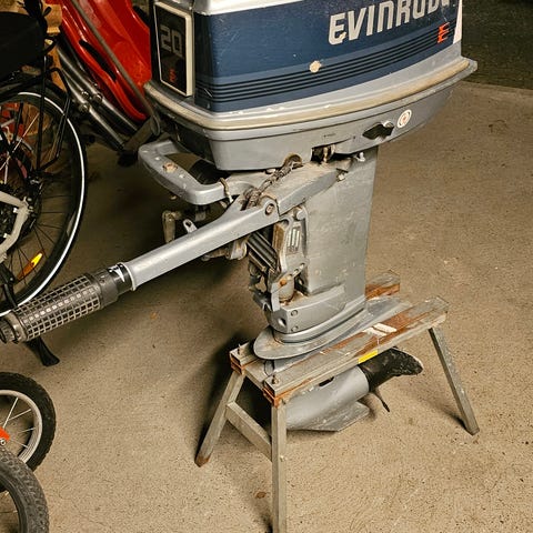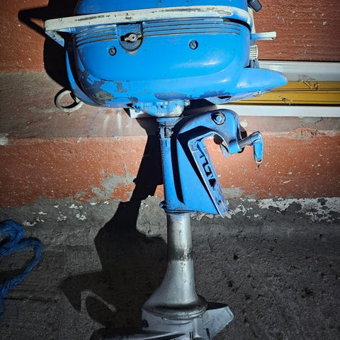 Div påhengsmotorer og bensintanker i varierende stand. Vet ikke noe om disse annet en at de har vært lagret i minst 10 år siden sist bruk. Ta høyde for at det bare er delemotorer/maritim pynt. Ønsker i utgangspunktet å selge alt samlet.