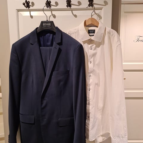 Pent og lite brukt mørk blå Giovanni dress i str 173 cm/ XS/S herre til salgs.
