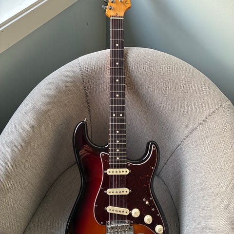 Den har ikke sett mye bruk siden Sommeren 2020. Instrumentet er pent oppbevart i koffert og godt ivaretatt. Gitaren har liten patina (skjønnhetsmerke på bilde 10), men fremstår ellers som ny, se for øvrig bilder av der halsen er montert på kroppen. Alle funksjoner er testet i Desember 2024 og den fungerer utmerket.