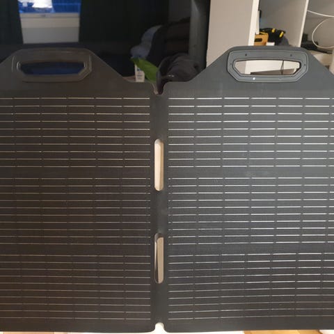 Sammenleggbart solcellepanel m/ bærehåndtak