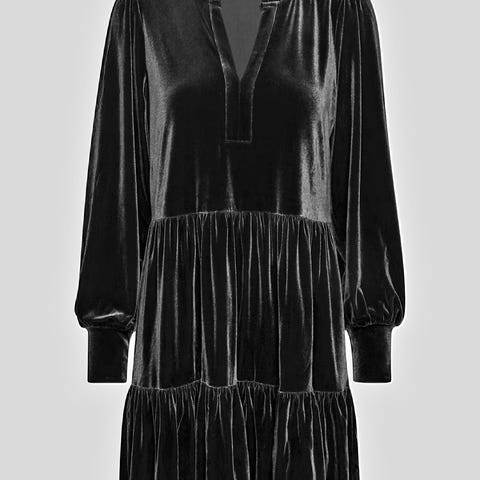 Nydelig velourkjole fra Part Two med v-hals og trekvart ermer. Kjolen har en lett og ledig passform med lett puff på skuldrene. Nederst på kjolen er det en fin kappe som setter prikken over i’en. Denne kjolen er perfekt til fest!