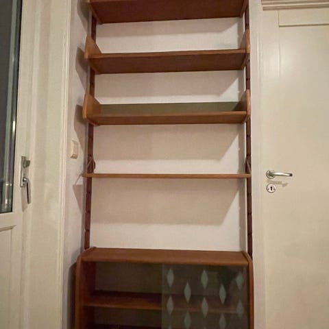 Fin hjørne hylle i teak. Noen bruksmerker men i god stand