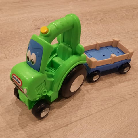 En Little tikes lastebil tilsalgs. Når den kjøres framover beveger ballene i lasteplanet på seg.