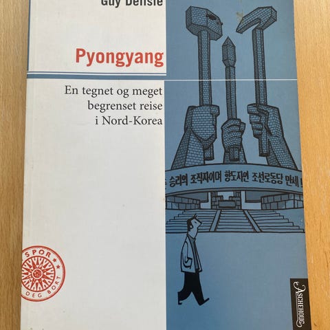 Guy Delisle Pyongyang Graphic Novel i engelsk språk. Boken gir en illustrert reise gjennom Nord-Korea, med innsikt i landets kultur og samfunn. Inneholder tegneserieillustrasjoner og historiefortelling.