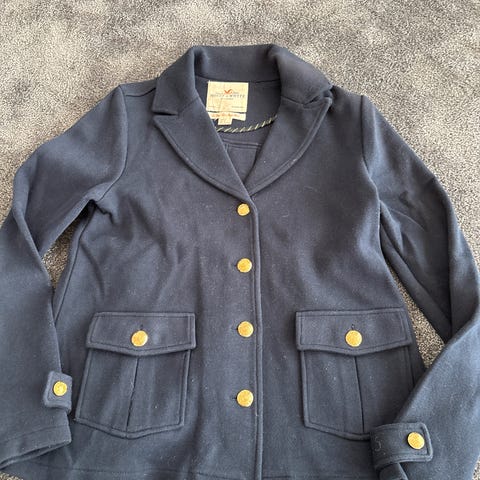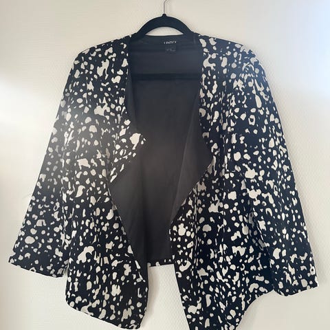 Nydelig jakke/ bluse med strikk bak i livet. Passer perfekt til skjørt, shorts og bukser eller over en ettersittende kjole. Den er romslig i størrelsen og passer fint til meg som er str M. 100% polyester