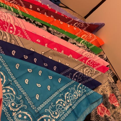 Flotte bomullsskjerf/bandanas i ulike blå-/grønntoner