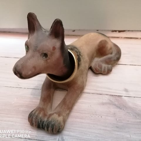 Batteridrevet hund, skal nok starte å gå da man dra i snora som den er bundet med. Har ikke testet den. Ca. 26cm. lengde. Se bilder. Kan sendes som liten pakke (kr69,-) eller hentes.