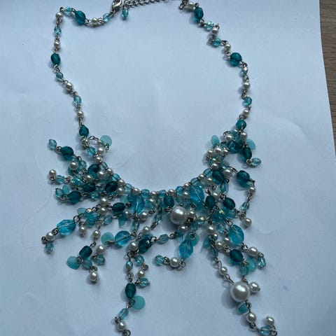 Knapt brukt halskjede, masse fragerike perler. Selges sammen med to anheng.