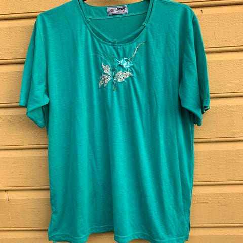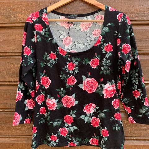 Fin topp for dame str. XL selges. Lite pent brukt. 93% bomull, 7% polyester.
