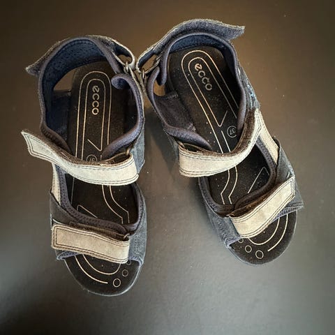 Pent brukte kvalitetssandaler fra Ecco, skinn, kan justeres i alle ender, brukt i 2 uker av ett barn. Str 36. Selges for 250 kr, nypris var 899.