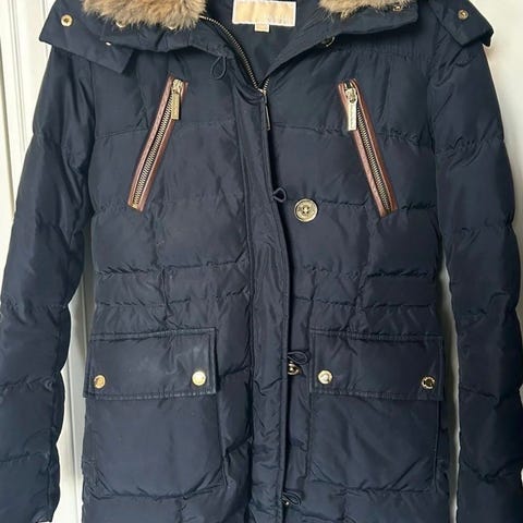 Lite brukt vinter jakke av Michael Kors. Den mangler pels på hetten ellers er den helt og fin. Komfortabel å bruke. Mange lommer. Glidelås med knapper. Kan også strammes fra magen.