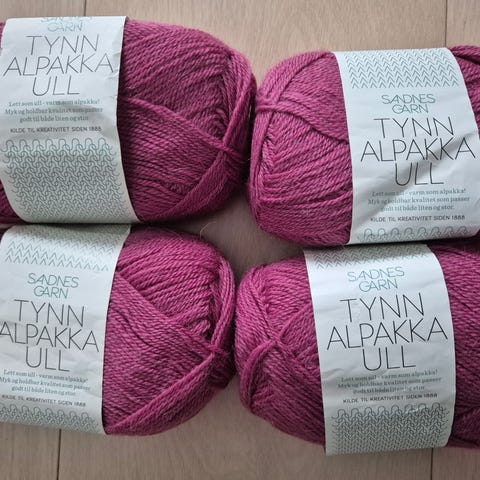 Tynn Alpakka Ull fra Sandnes Garn til salgs. KR 45,- pr 50 g. Kan sendes mot porto. Inneholder 65% alpakka og 35% ull. Lett som ull - varm som alpakka! Myk og holdbar kvalitet som passer godt til både liten og stor. Strikkefasthet: 24 masker på pinne 3½ = 10 cm. Kan brukes i stedet for TOVE. Løpe lengde pr nøste (50g) = ca. 166 meter. Kan sendes mot porto.
