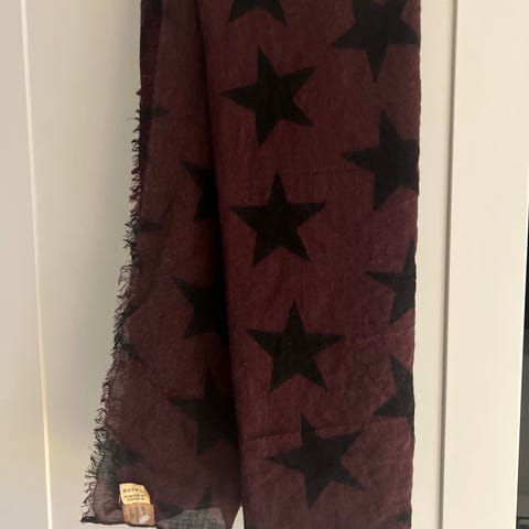 Selger dette flotte skjerfet, det er kun brukt et par ganger. Det er 1m bredt og 2m langt. Skjerfet er i en nydelig blå farge med hvite stjerner.