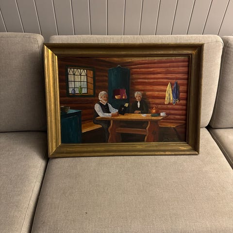 Bilde med ramme. Rammen er litt brukket i det ene hjørnet, men dette kan enkelt fikses enten av meg eller kjøper.