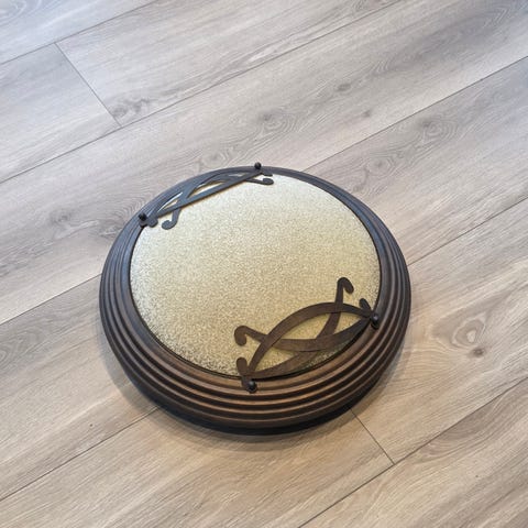 Taklampe, ukjent merke. Laget i glass og metall. Krokhengt i tak.
