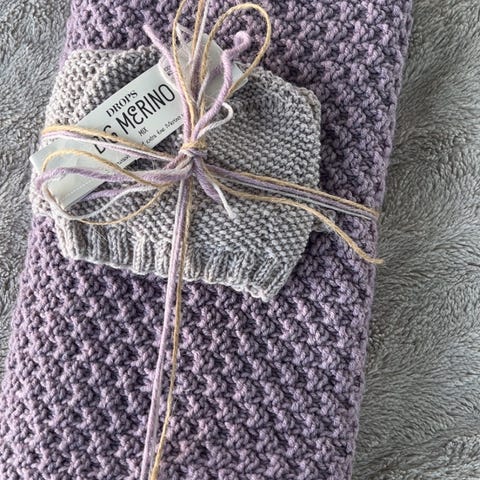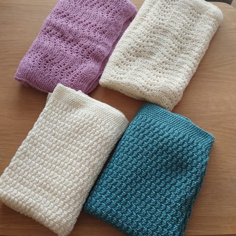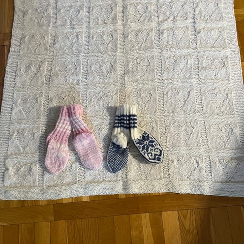 Hjemmestrikkede babytepper/vogntepper, rosa.
